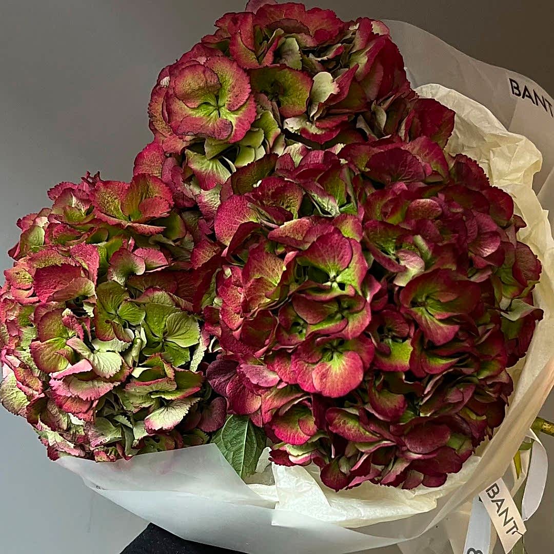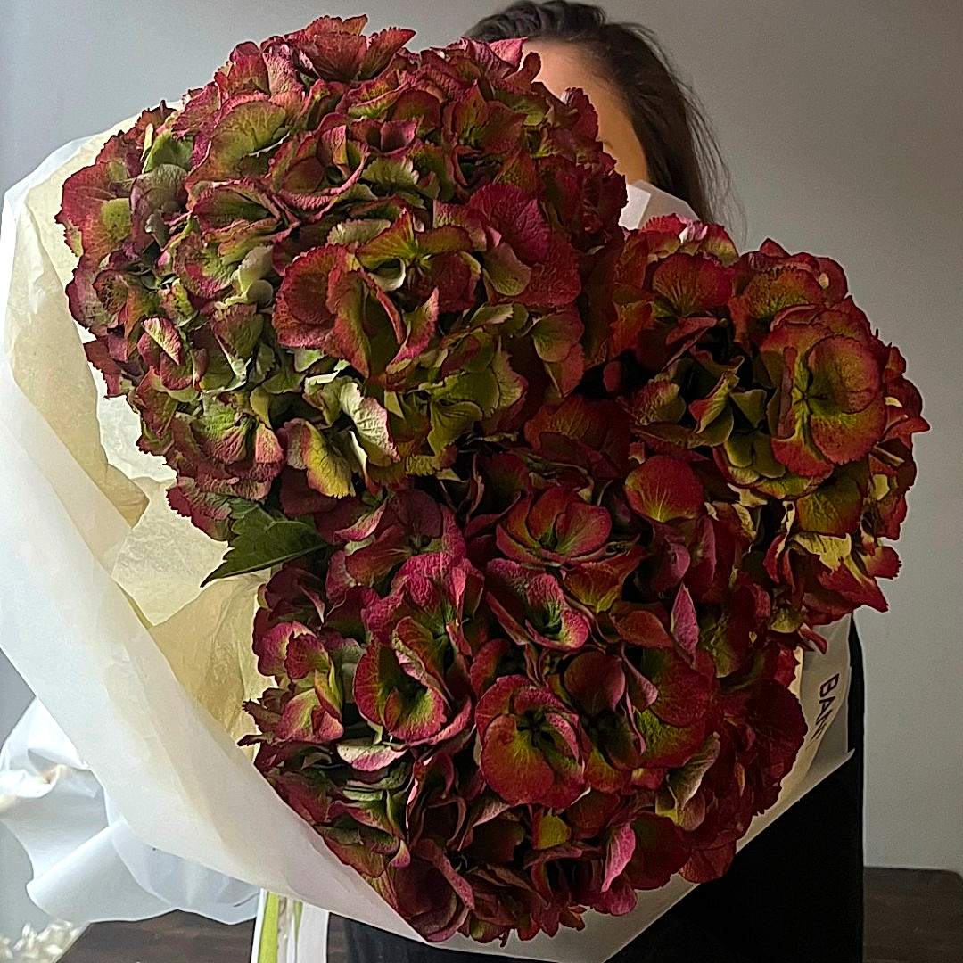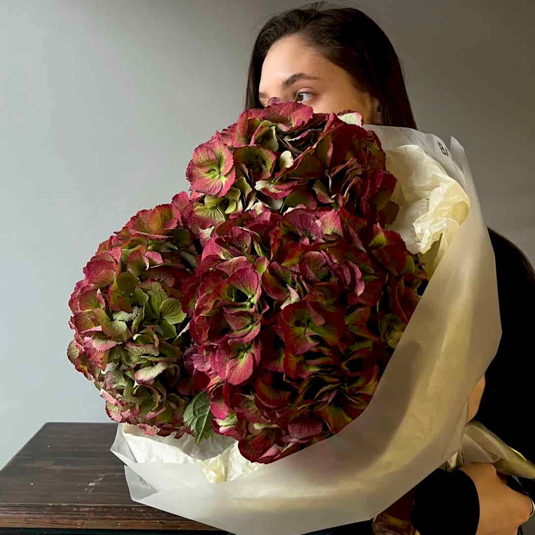 Гортензии осеннего оттенка привнесут нотки таинственности и загадки. Этот букет отлично подойдет для любителей ярких и необычных решений.