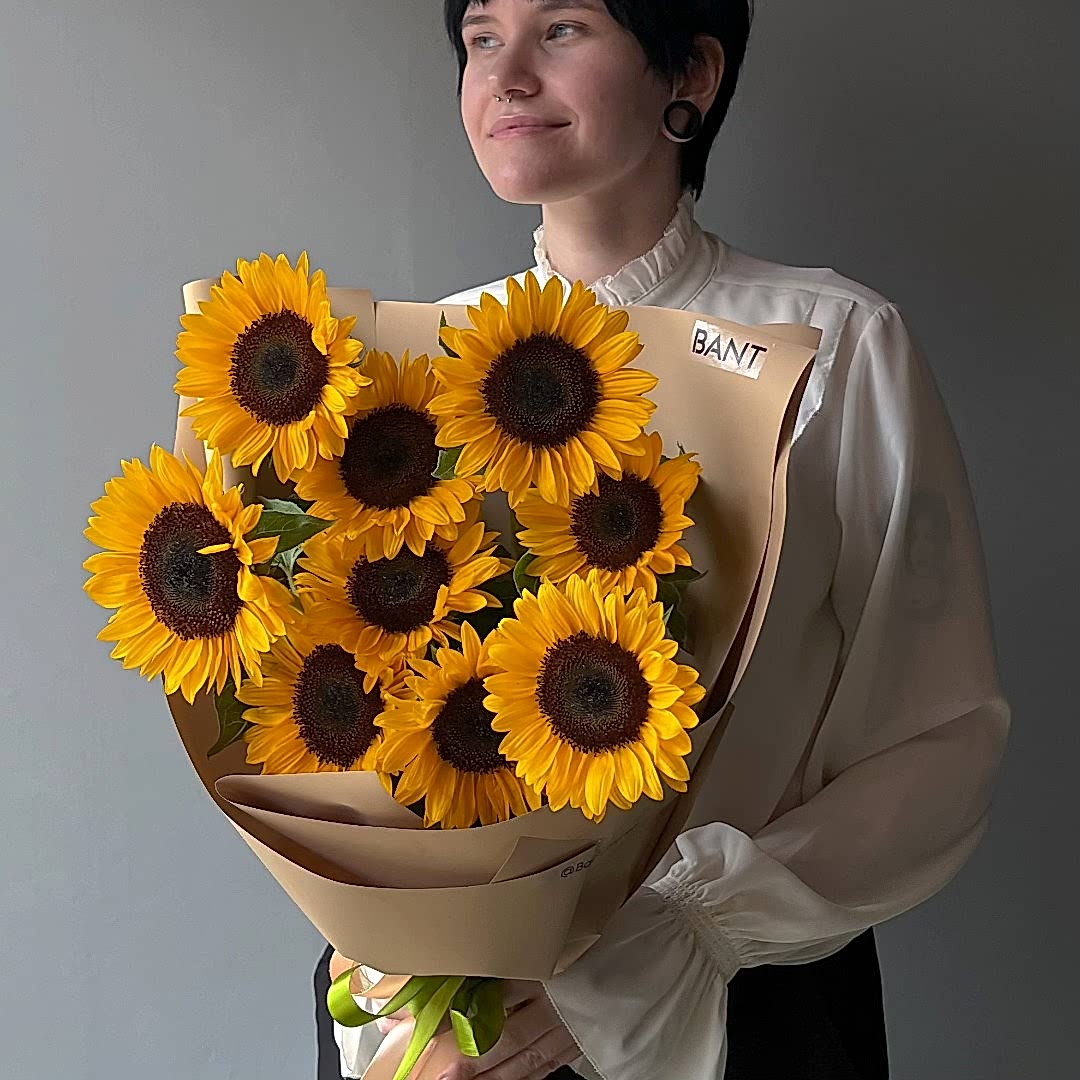 Подарите солнечное настроение с нашим изысканным букетом из подсолнухов! Яркие цветы, символизирующие радость и тепло, прекрасно подойдут как для праздника, так и для повседневного подарка. Каждое соцветие выглядит свежо и привлекательно, создавая настоящий фейерверк эмоций. Букет украшен зеленью, подчеркивающей красоту подсолнухов и добавляющей гармонии. Он станет замечательным акцентом в вашем интерьере или приятным сюрпризом для близкого человека. Пусть каждый день будет ярким, как этот букет!