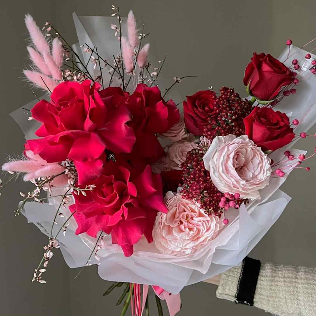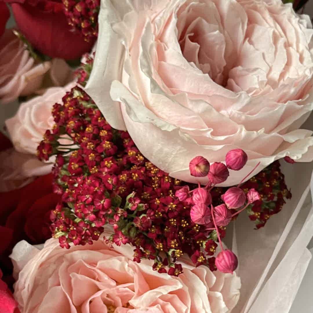 Перед сборкой букета мы можем выслать фото цветочной подборки состава, и отправим фото готового букета в WhatsApp, Telegram или на вашу почту по вашей просьбе.