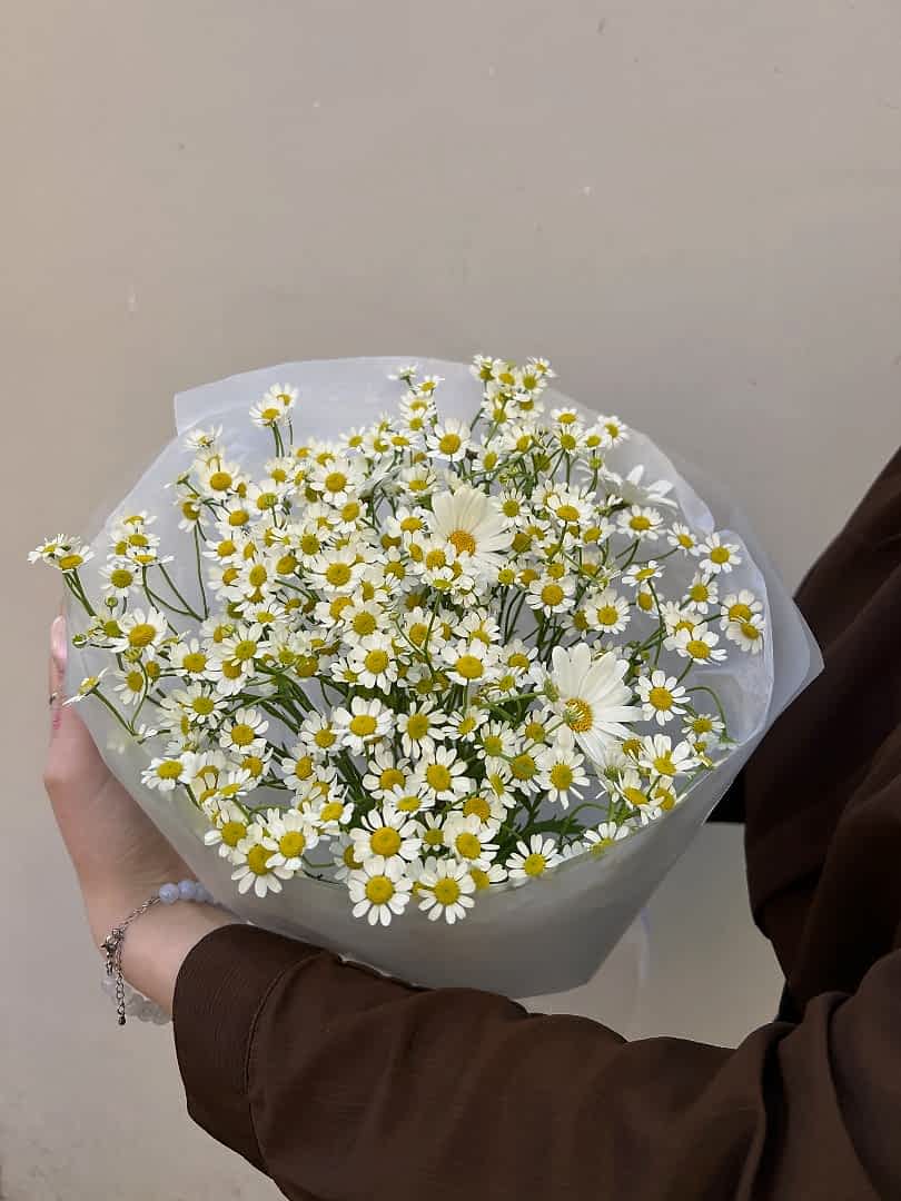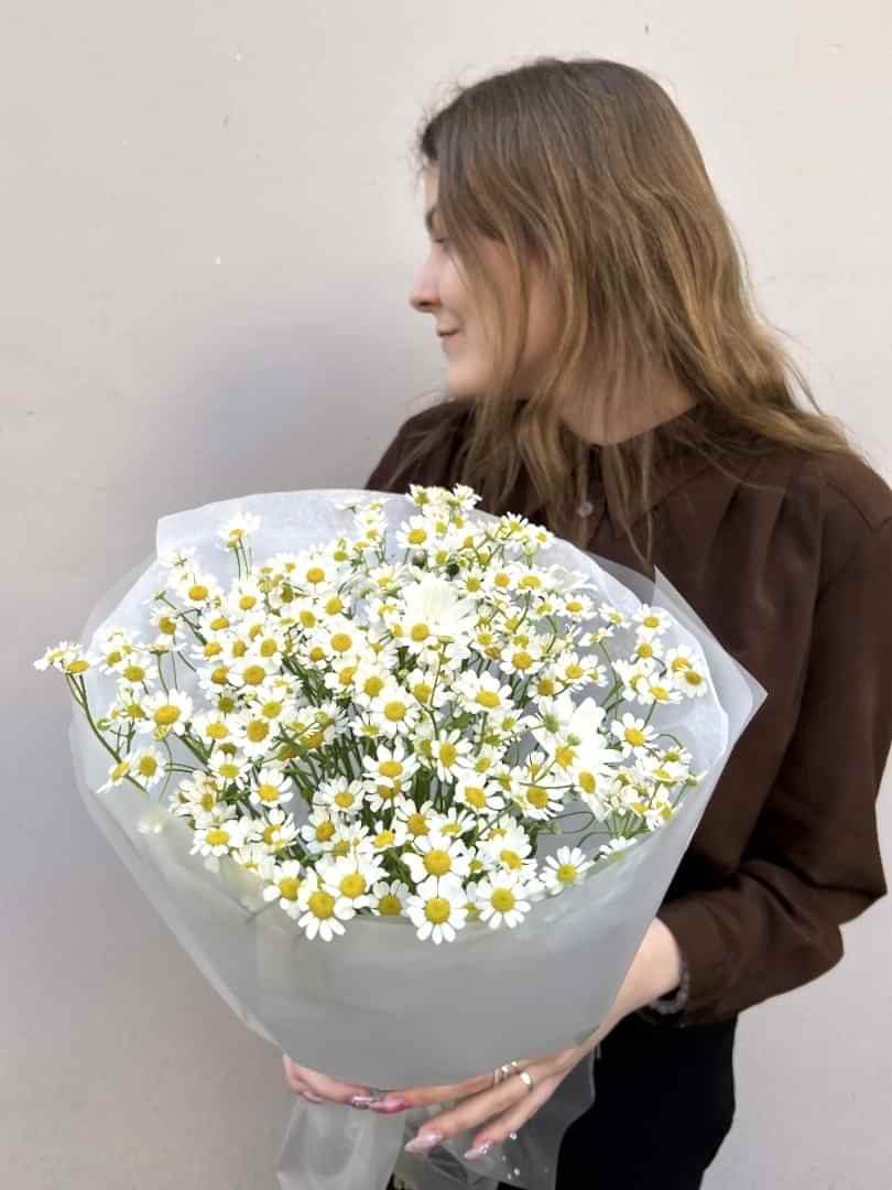 Ромашка (матрикария) в букете напомнит вам о солнечных летних днях!