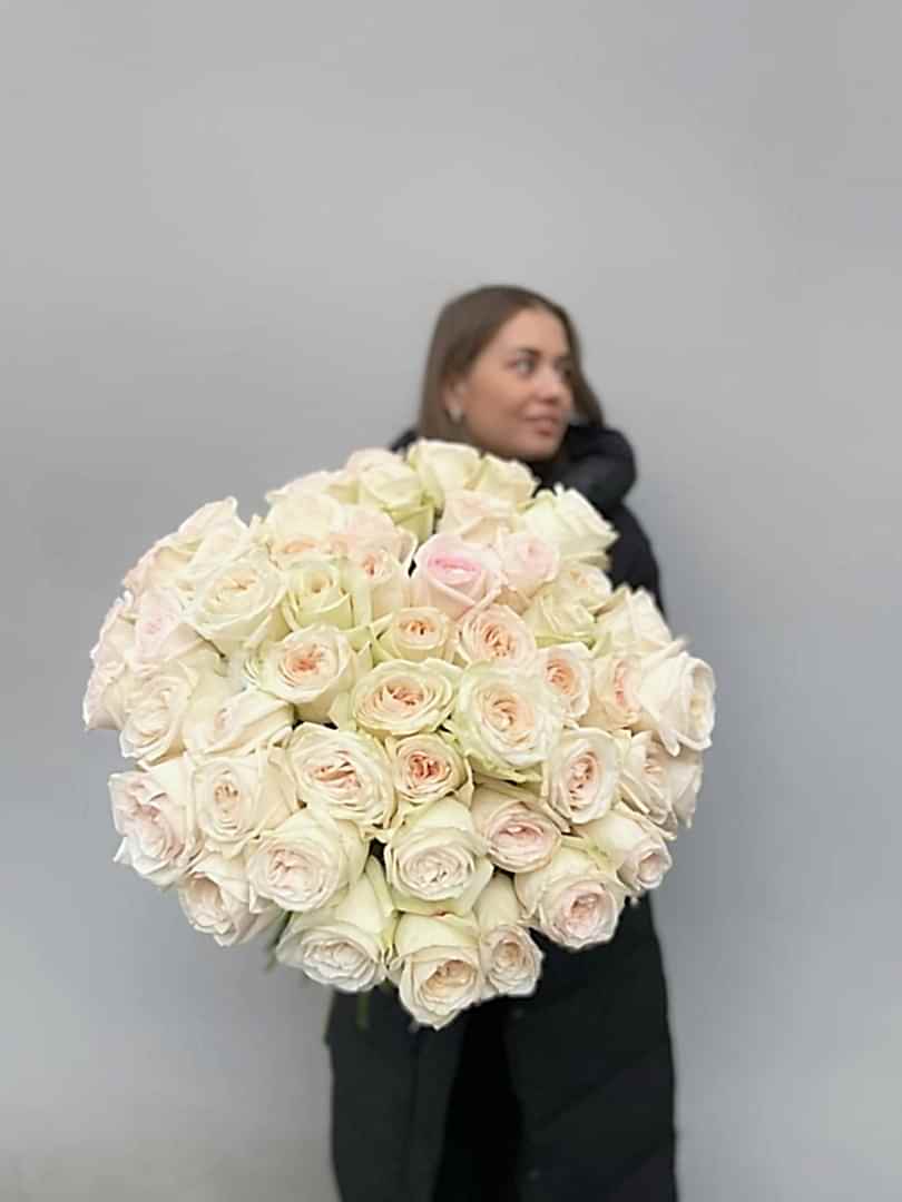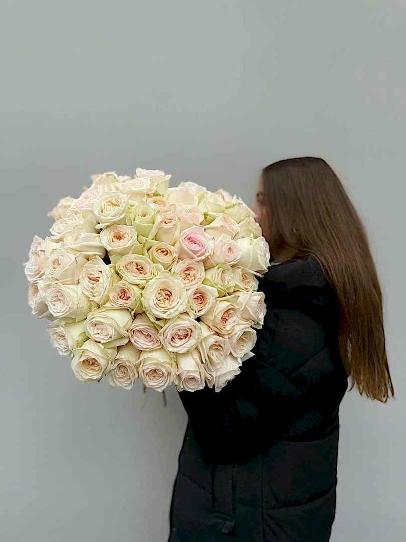 Букет из 51 пионовидной розы Вайт Охара