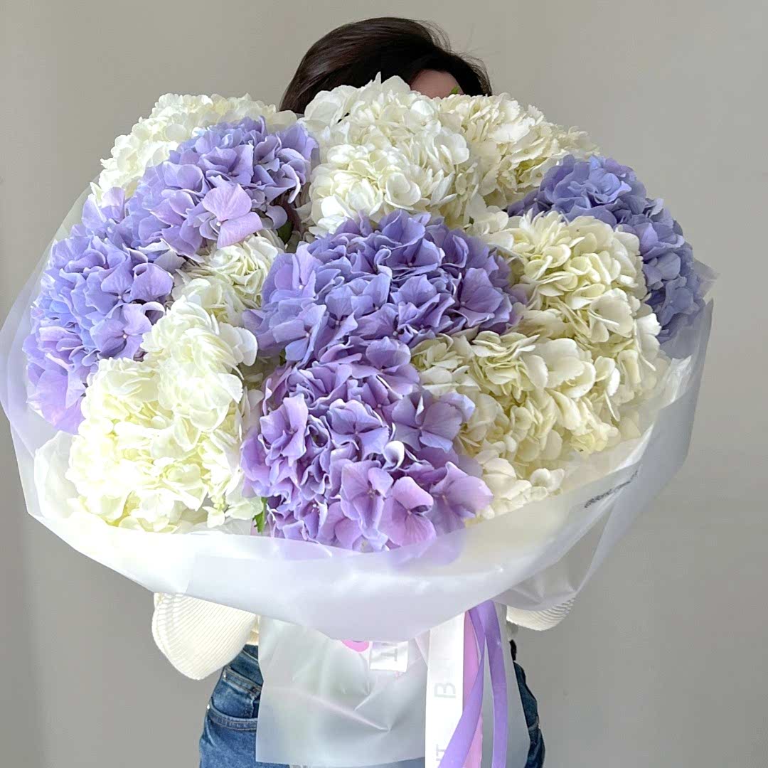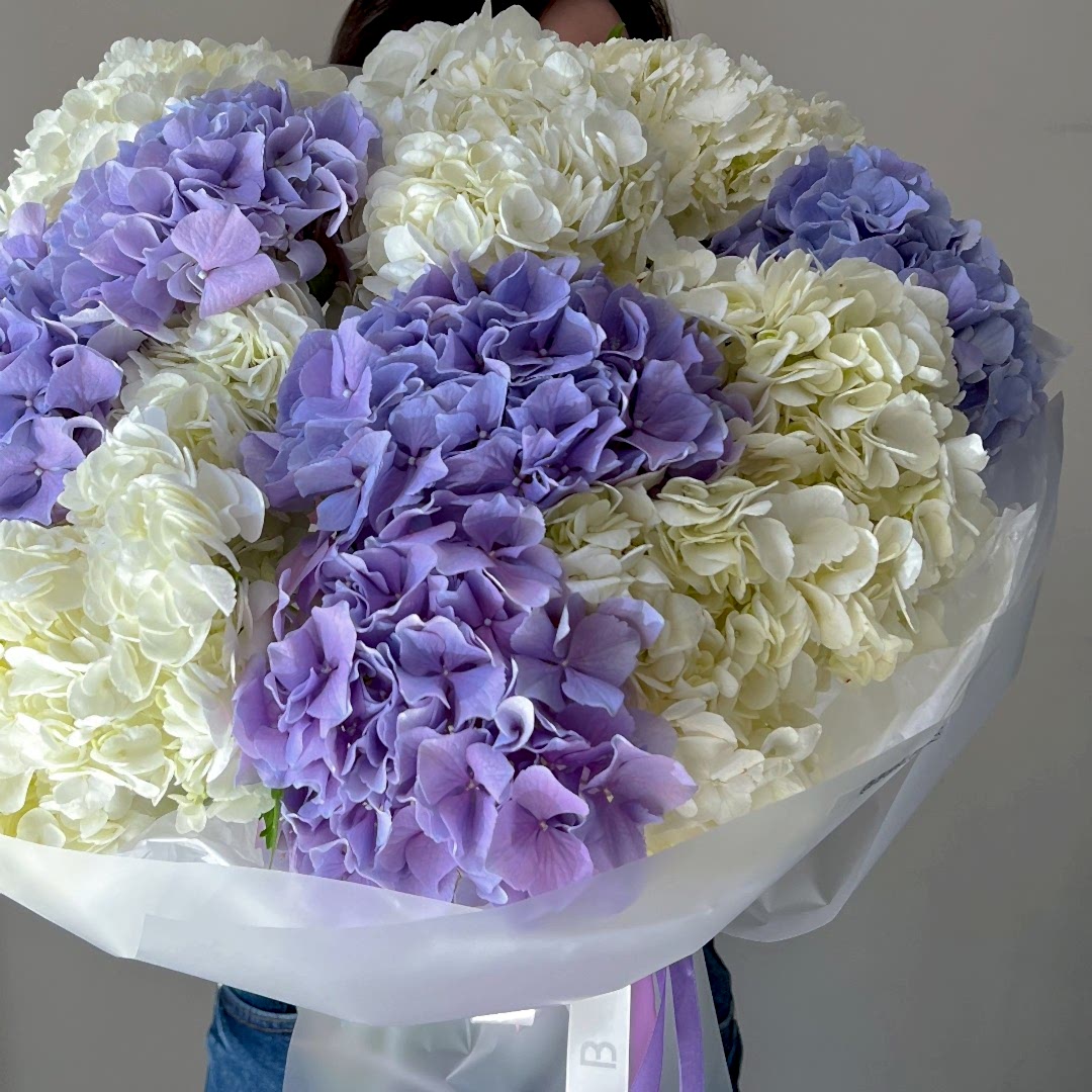 Изысканный моно букет из нежных гортензий - это идеальный подарок для любого случая. Гортензии символизируют благодарность, красоту и изобилие, делая их идеальным выбором для выражения своих чувств. Каждый цветок бережно подобран и собран в букет руками опытного флориста, чтобы подарить радость и впечатления надолго. Удивите своих близких или близких этим удивительным букетом гортензий.