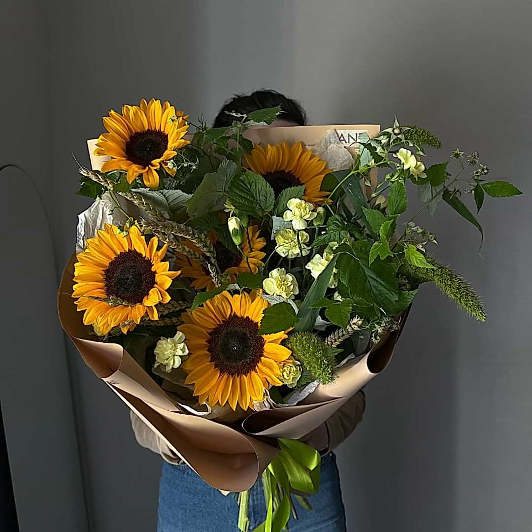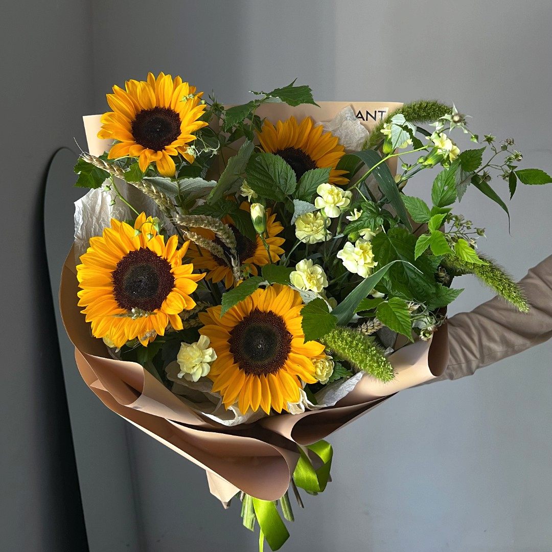 Освежающий букет с подсолнухами призван принести радость и солнечное настроение в ваш дом. Яркие цветы подсолнухов символизируют радость, счастье и надежду, делая этот букет идеальным подарком для близких и дорогих людей. Они поднимут настроение и добавят уютное летнее настроение в любой интерьер. Подарите себе или своим близким частичку лета с этим восхитительным букетом с подсолнухами.
