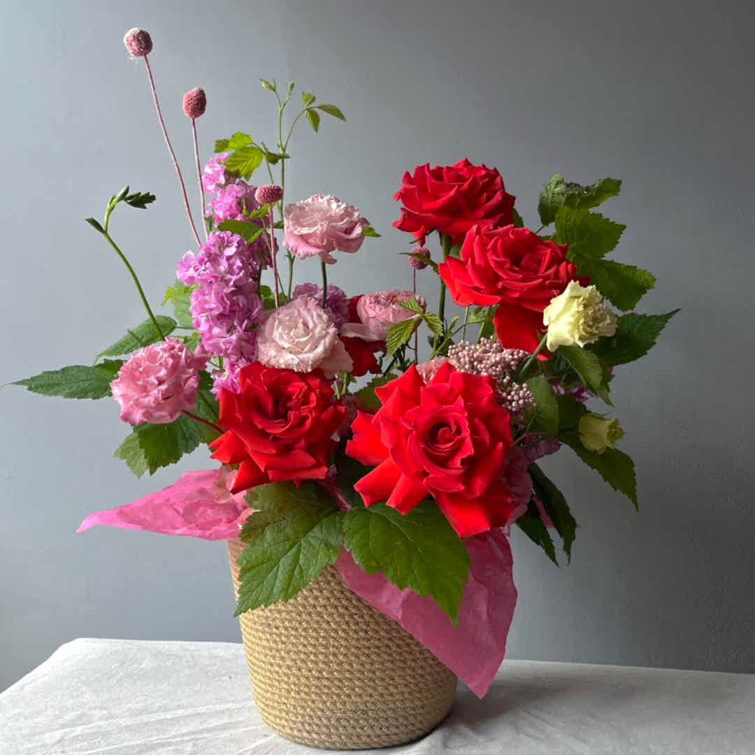 Хотите порадовать близкого человека или коллегу по работе? Тогда эта композиция в джутовой корзине— то, что вам нужно! Нежные цветы в этой композиции создают атмосферу тепла и уюта. Букет идеально подойдёт для любого случая: от романтического свидания до корпоративного мероприятия.