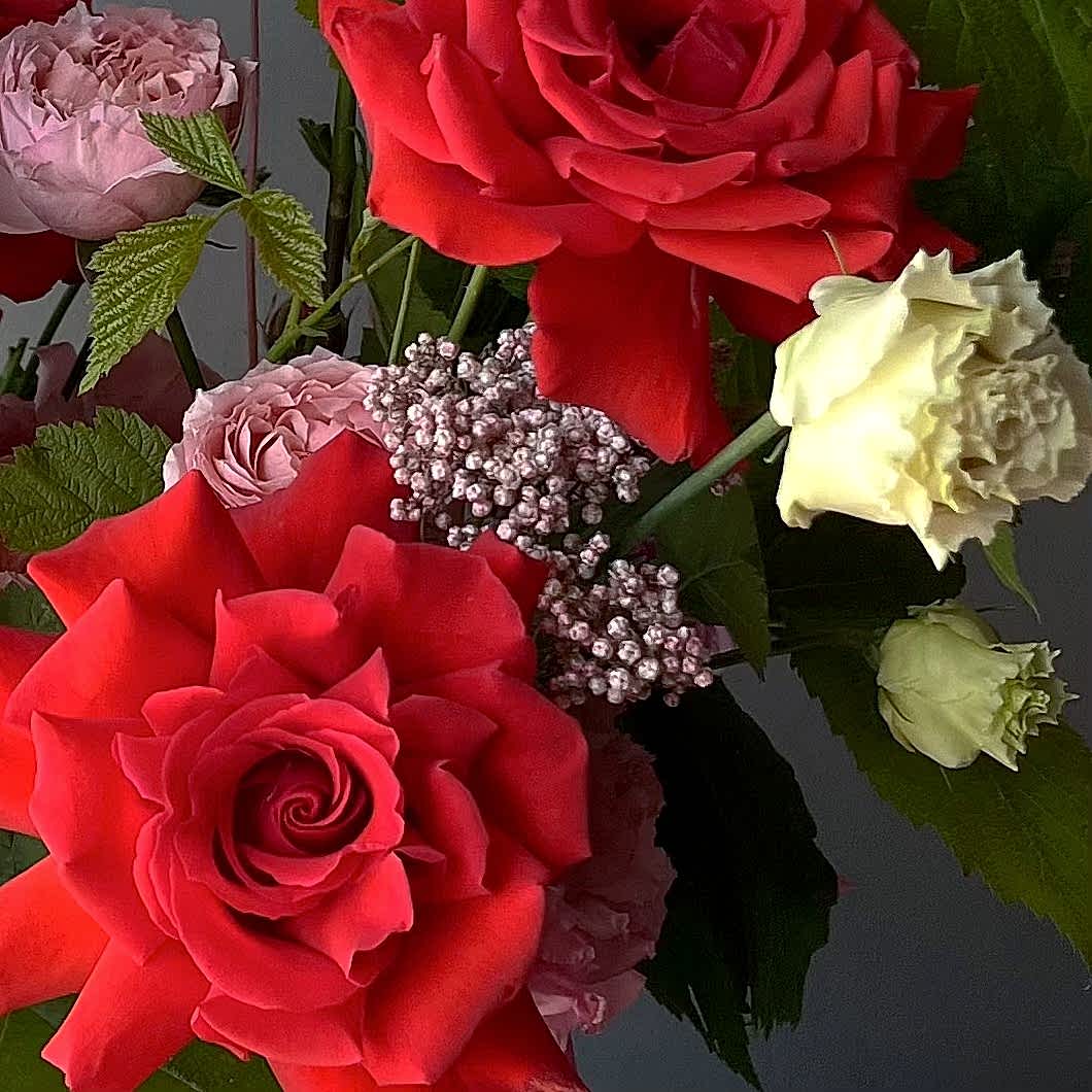 Перед сборкой букета мы можем выслать фото цветочной подборки состава, и отправим фото готового букета в WhatsApp, Telegram или на вашу почту по вашей просьбе.