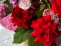 Состав: роза сорта Нина, лизиантус, пионовидная роза сорта Сильва Пинк, озатамнус, краспедия, маттиола, ветки малины (на фото).