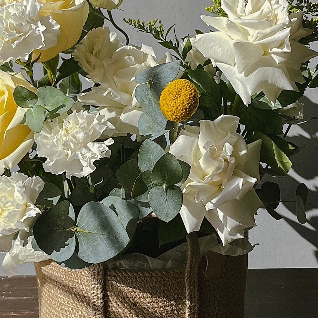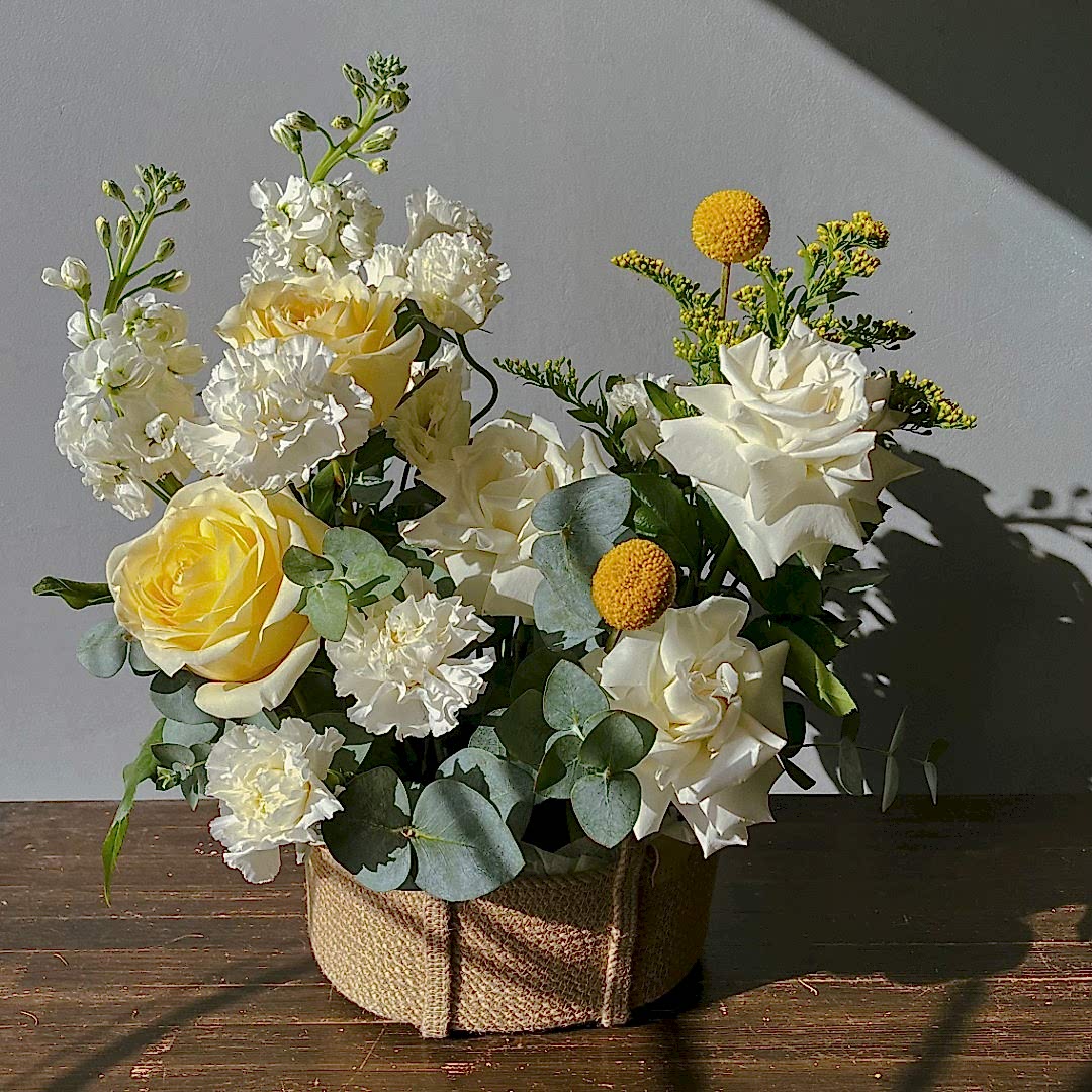 "Улыбка лета" — это солнечное настроение в каждой детали. Нежные цветы в тёплых жёлтых оттенках дарят радость, лёгкость и уют, словно тёплое летнее утро. Идеальный подарок, чтобы сказать "ты — мое солнышко".